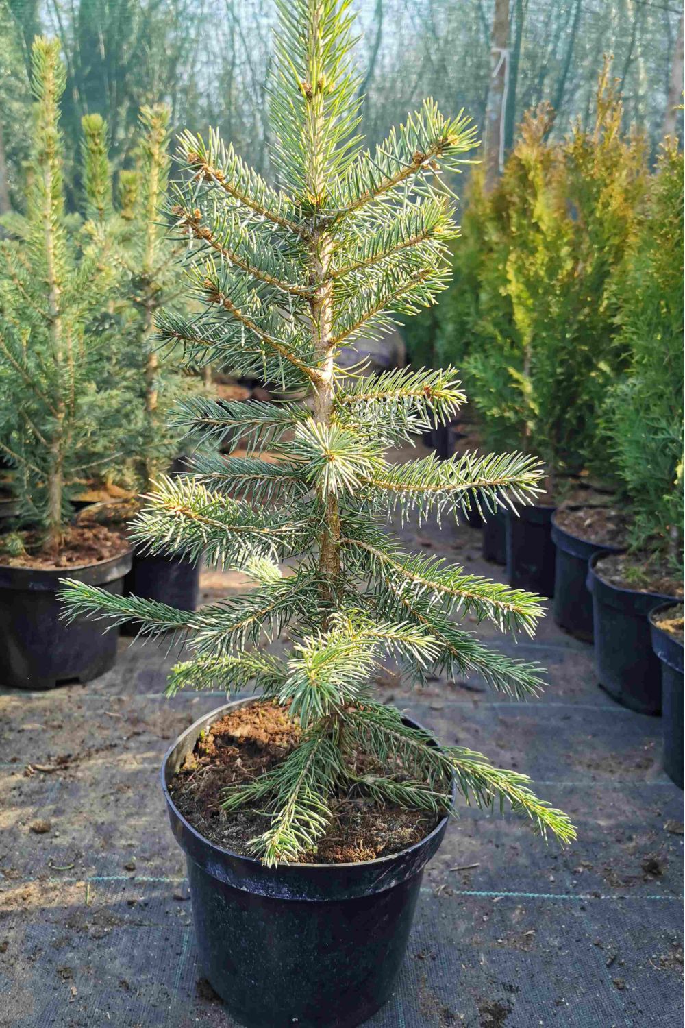 Взрослое дерево достигает в высоту 30 м, а в некоторых местностях и 55 м. Диаметр кроны обычно не превышает 3-4 м. Приземистые ветви свисающей формы, остальные – горизонтальные. Крона заостренная, напоминает стрелу. Крупномер ель сербская, или балканская отличается двуцветной серо-зеленой хвоей. Ее длина может достигать 2 см, а ширина – 0,2 см. Сорт неприхотлив в выращивании, поэтому культивируется по всей Европе и до Урала. Ель теневыносливая, не боится сквозняков.