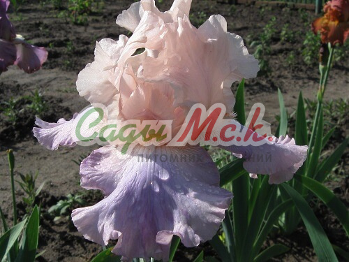 Рассада ириса Acoma относится к высоким бородатым ирисам, известным как пликата, т.е. в которых яркий рисунок располагается на более светлом фоне. Это однократно цветущий ирис, на каждом стебле которого развивается от 5 до 6 бутонов. Нижние доли (фолы) имеют светлый фон цвета слоновой кости и фиолетовые края, мягко переходящие друг в друга. Верхние доли (стандарты) – светло-светло-голубые, вертикально подняты вверх. Бородка – желтая, малозаметная. Верхние и нижние доли слегка гофрированные. Цветение среднее.