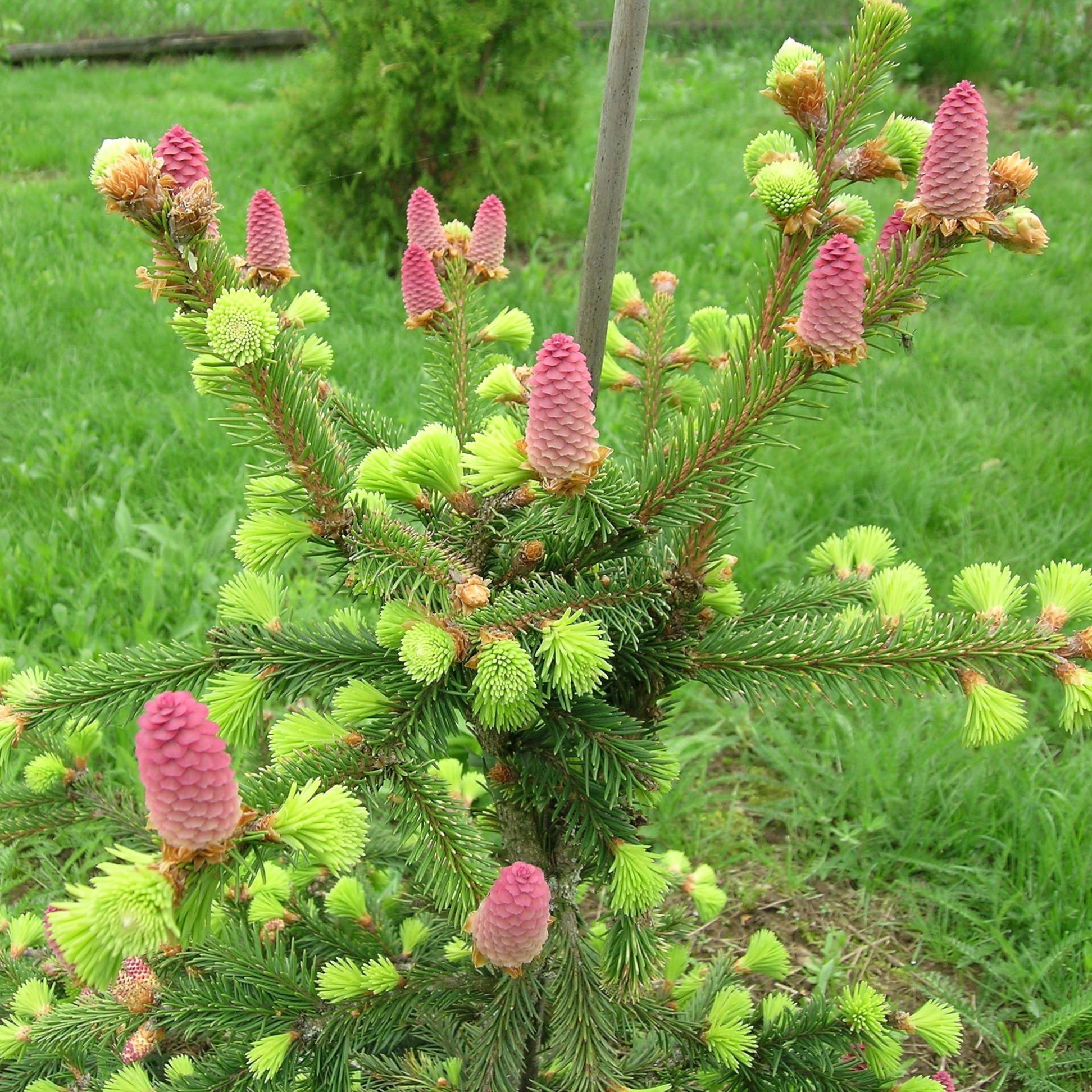 Ель обыкновенная Acrocona - медленно растущая, неправильная по форме разновидность ели, в зрелом возрасте маленькое деревце. К 30 годам достигает высоты 4-5 м и диаметра 3 м. Может расти кустом, без выраженного лидера. Её характерной чертой являются большие шишки, необычным образом расположенные на концах побегов, весной красного цвета, зрелые - светло-бурые, свисающие вниз. Шишки появляются даже на молодых растениях. Ель морозостойка. Представляет интерес для любителей экзотических растений. Рекомендуется для японских, небольших приусадебных или каменистых садов. Сорт нетребователен к условиям произрастания.